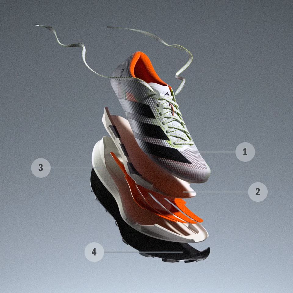 La saga Agravic démarre en 2023 comme la réponse d’Adidas au boom des « supershoes » en trail, inspirée des podiums ultra où la vitesse prime sur la protection. L’Agravic TT (Technical Terrain) débarque en 2026 comme la version « rock’n’roll » de la gamme : une plaque « caronne » pour la rigidité, une semelle élargie pour la stabilité, et un mesh renforcé TPU pour ne pas finir en charpie après 50 bornes. La communication marketing est clair : « Surfaces instables et imprévisibles, sentiers rocailleux et descentes abruptes : les types de terrain sur lesquels l’Agravic TT est conçue pour exceller».