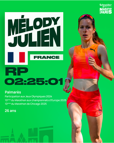 Mélody Julien, 27 ans, complète ce trio avec un record à 2h25’00. Elle incarne la génération montante d’un athlétisme français féminin qui se hisse enfin à la table des meilleures.