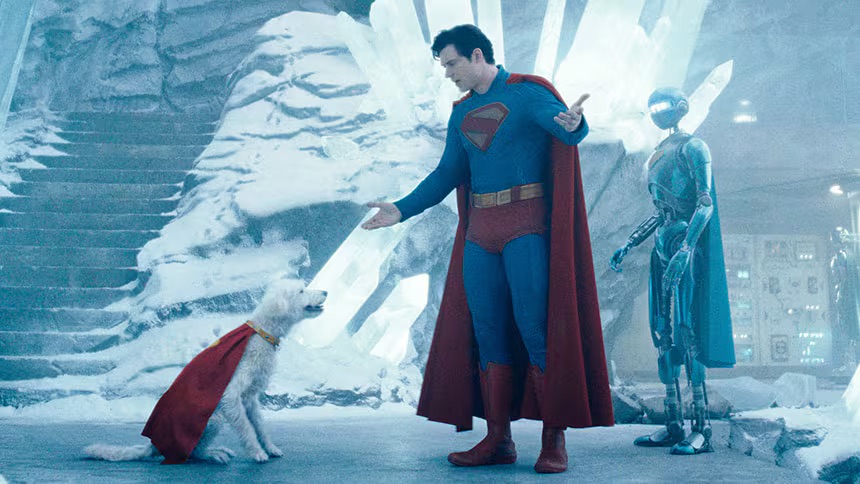 On retrouve cette esthétique duelle dans Superman avec Krypto, le chien que garde Superman. Krypto est à la fois super‑puissant et complètement incontrôlable. Attachant et dangereux. Le film exploite ce côté “gamin” du personnage pour le rendre plus proche du public, avant de le faire basculer dans une véritable scène de tension émotionnelle.